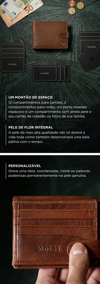 - Acomoda até 20 cartões, notas e recibos