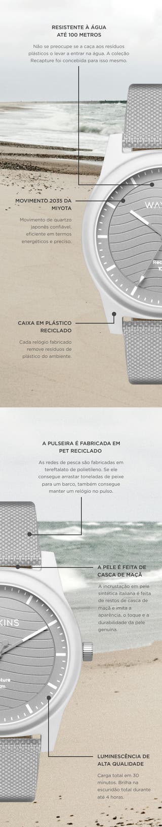POR CADA RELÓGIO VENDIDO, AJUDAMOS a remover 100 garrafas de plástico DO meio ambiente