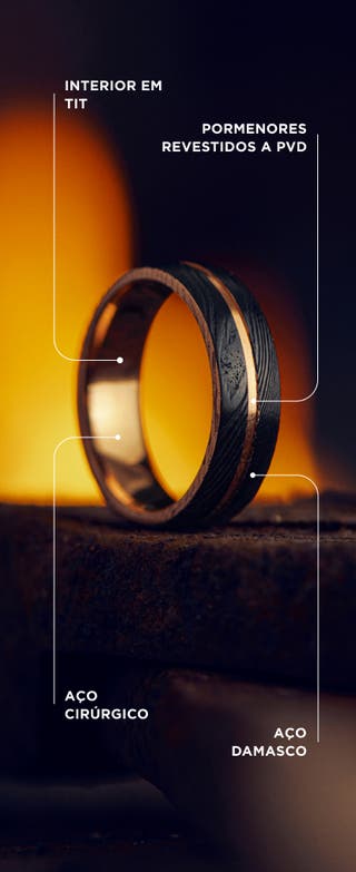 - Aço damasco - cada anel é único