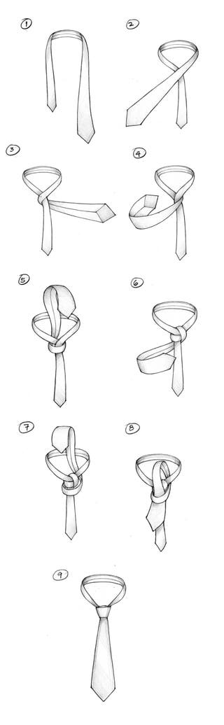 - Passe a extremidade larga à frente do nó e passe-a para cima pelo laço do pescoço.