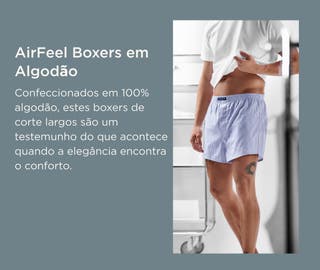 AirFeel | Boxers Largos Azul-claro em Algodão com Elástico Revestido - Lote de 3